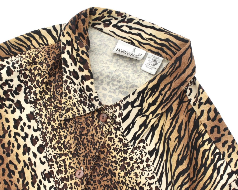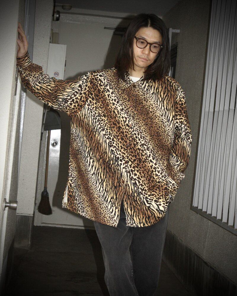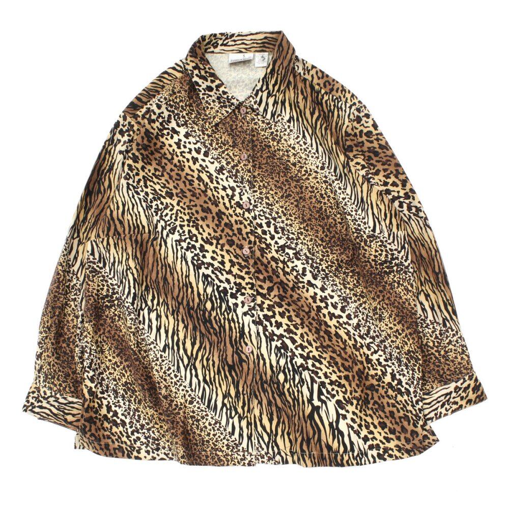 An oversilhouette shirt from the 1990s. The peach skin fabric made of polyester material has a texture like faux suede, and the leopard pattern is combined to create a three-dimensional look with depth. It is an individual that can be worn roughly with a big silhouette and shows an impact. It is in a good condition overall subjectively. Since it is an old item, it rarely deteriorates over time. Please check the photos and understand the characteristics of vintage before purchasing.
