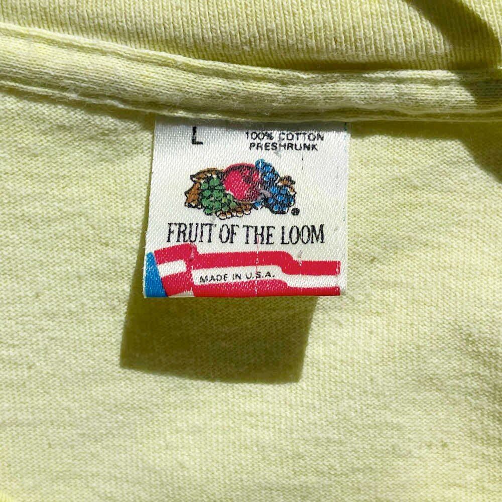 USA made FRUIT OF THE LOOM body, sleeves and hem are single stitched.