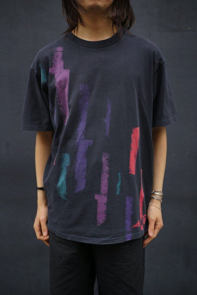 It has an artistic geometric print that is typical of this era, and the faded ink black body enhances the atmosphere.