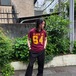 80s school t-shirt USA is a vintage t-shirt from Los Lamas High School in California. Bordeaux-colored body that has faded moderately over time. feeling