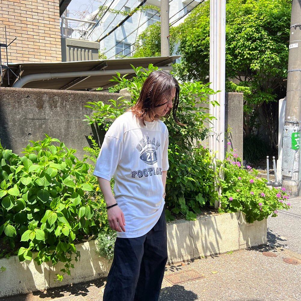 70s Champions Football T-shirt XL size, which is rare for vintage football T-shirts. It has a very vintage-like texture, such as the rubbing of the fabric and the cracks in the print. Easy to match off-white body with navy. Print