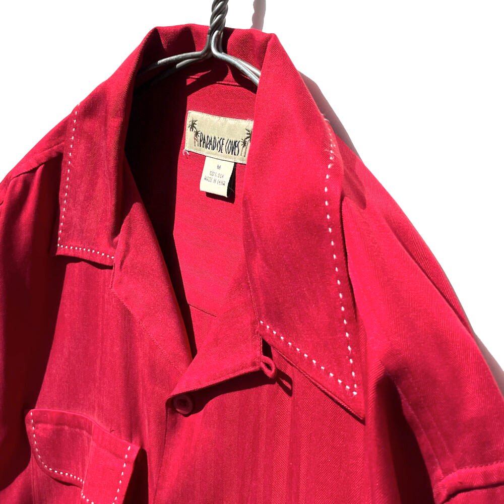 The eye-catching crimson coloring is impressive, and the M size has a moderately relaxed silhouette.