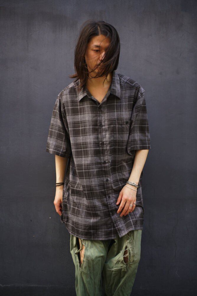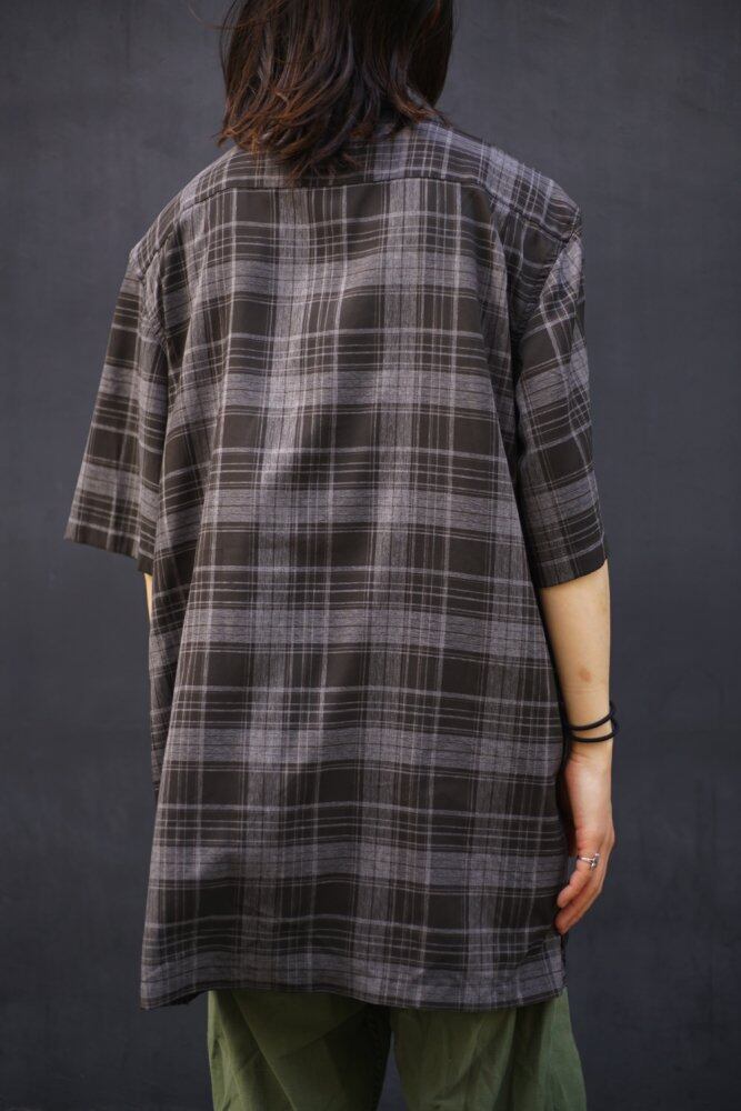 It is a check pattern shirt made by HAGGAR in the 1990s.<BR> The smooth, thin and light fabric feels good on the skin, and the surface has a dull luster, giving it a luxurious appearance.