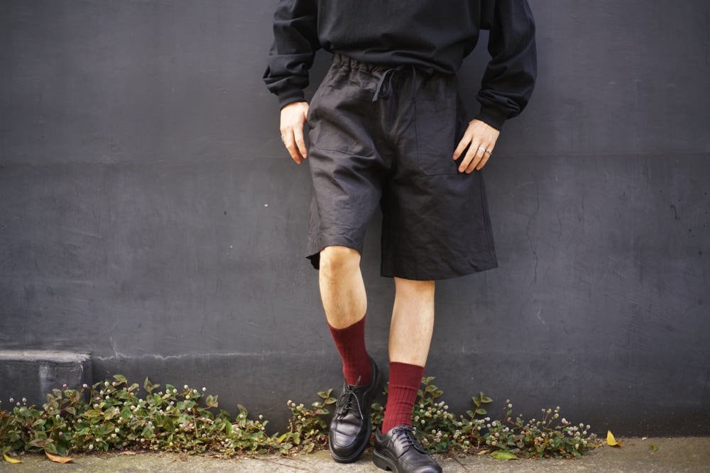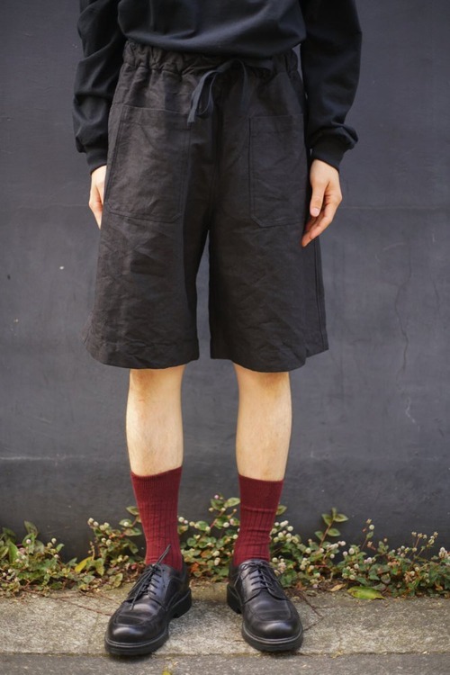 [ALVISTA] 4th Issue. Shorts made simply using the brands archive stock fabric. The waist is tucked to give it a beautiful look like trousers, and the easy pants are made with elastic shirring and drawcords. The overall relaxed silhouette makes it very easy to wear with the versatile FREE size setting regardless of the wearers body shape or style.