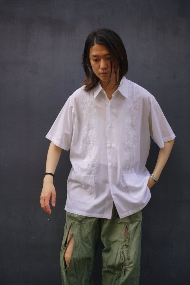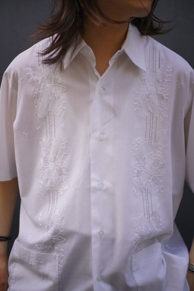 In Cuba, it is used as a formal shirt, and the shirt collar has a box silhouette and embroidery that gives a dressy impression, and the modern updated design creates a unique atmosphere while having a classical impression.