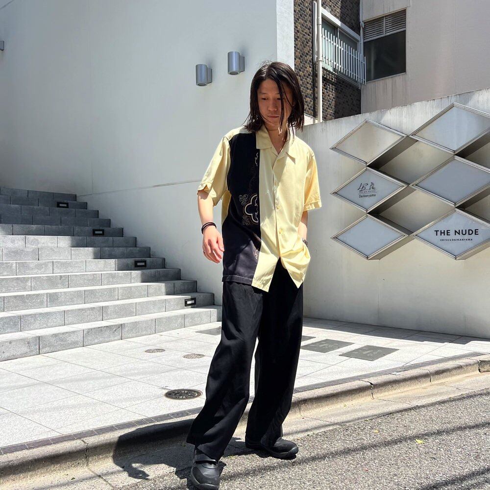 Short-sleeved shirt from the 90s A cream color with a soft image and black embroidered fabric on the right front for a mature atmosphere One piece made of rayon and polyester that is soft and light and smooth. It is the first place that the silhouette balance is good for a feeling.