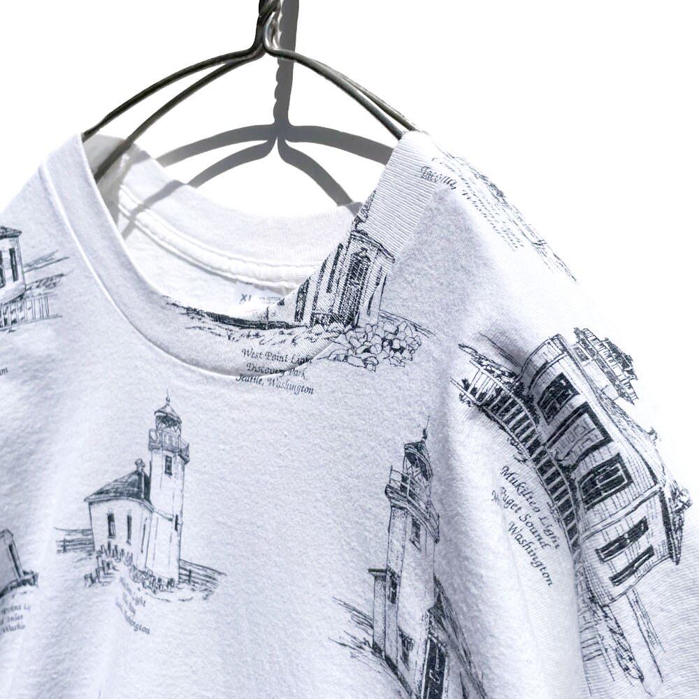 All-over artwork with Washington State attractions printed on the white body, and all-over prints hand-printed even on the neck ribs are very rare specifications.