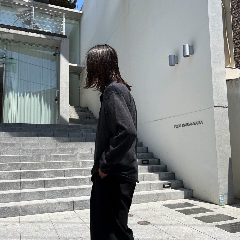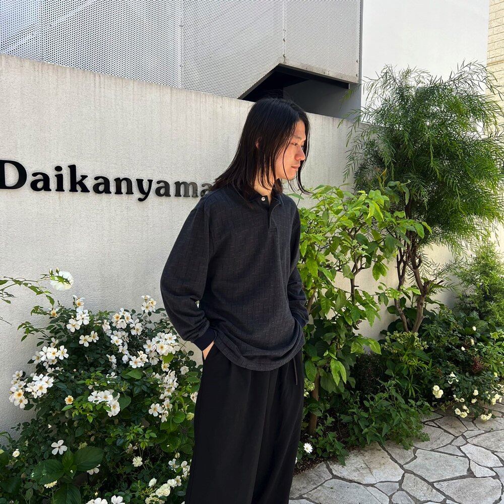 Long-sleeved polo shirt from the 90s Charcoal x navy A mature dark color that is easy to match One piece with a soft texture made of cotton x polyester fabric that feels good on the skin.