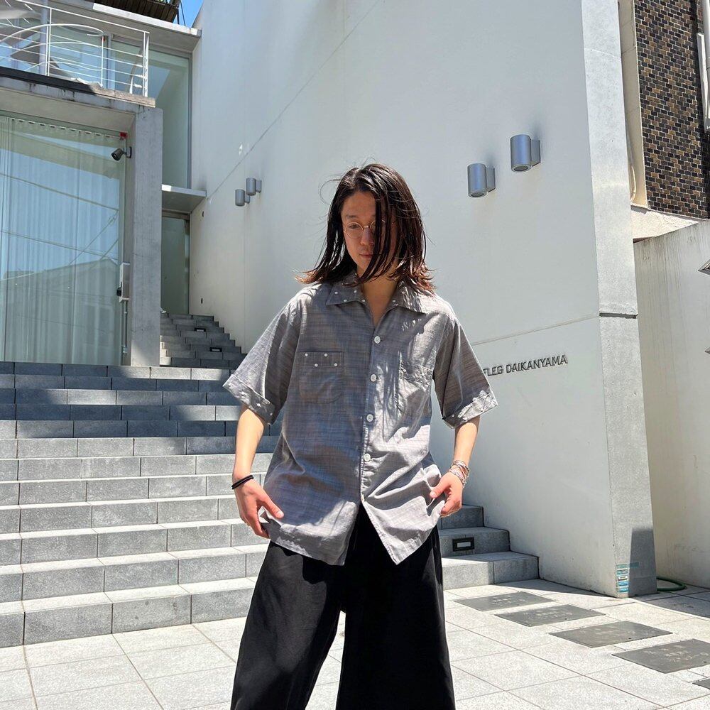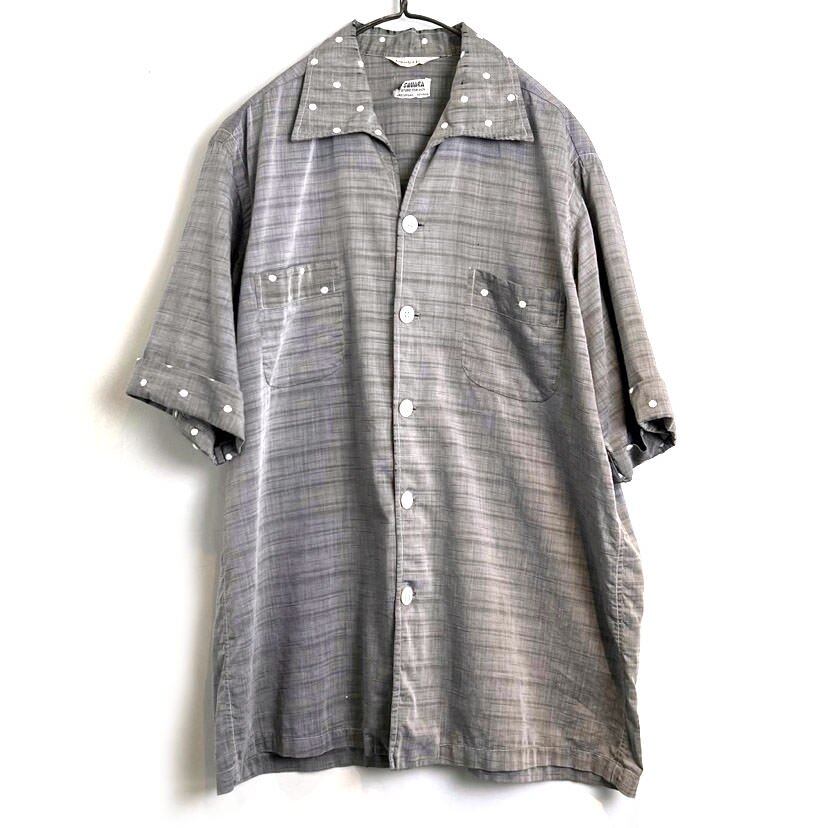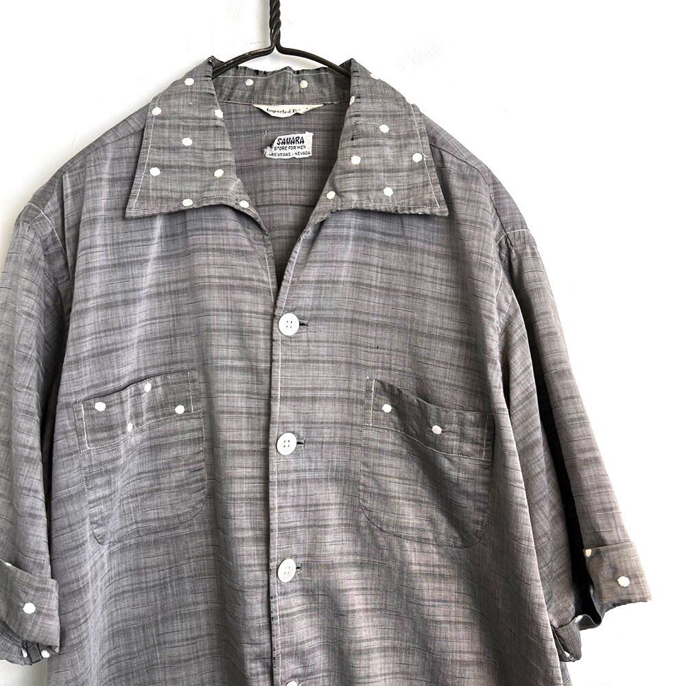60s short sleeve shirt A vintage shirt with a tasteful design with white dots partially embroidered on a gray Kasuri weave fabric with a nice atmosphere 100% cotton fabric with a smooth texture one silhouette