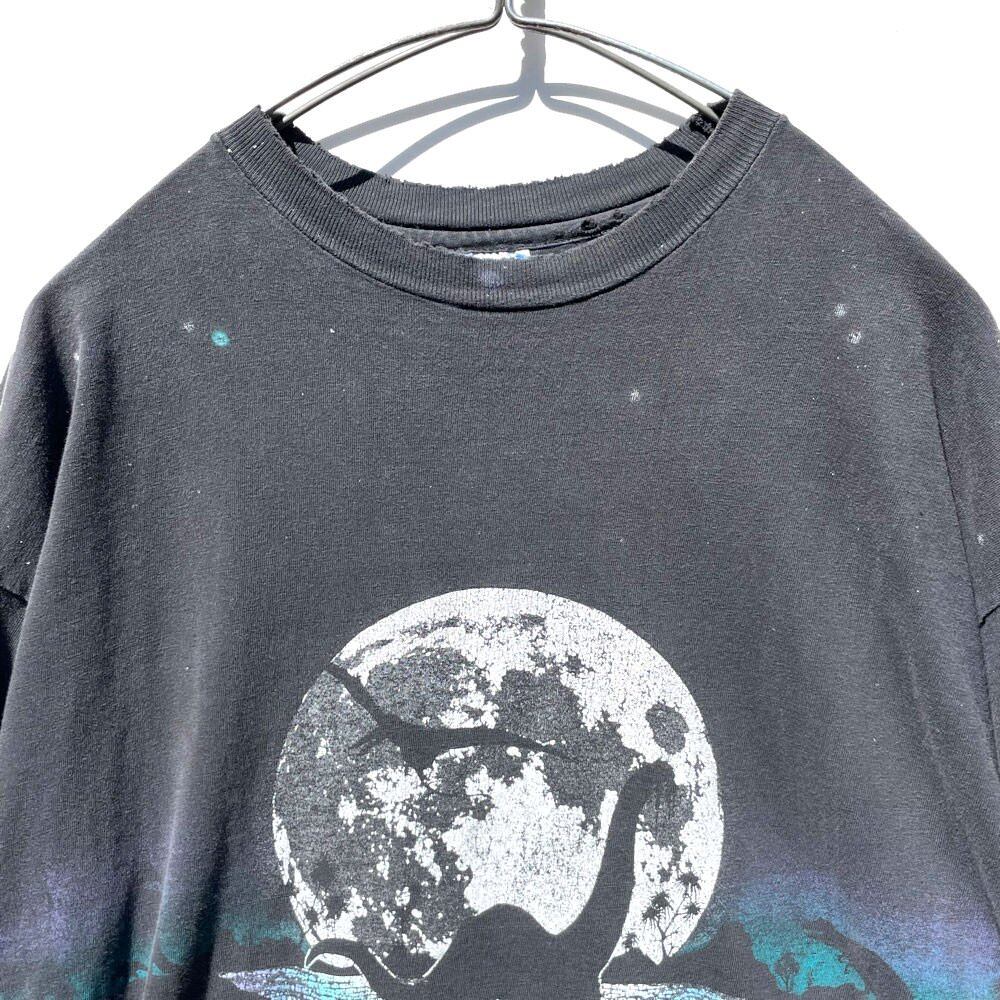 The dramatic print of a dinosaur under the starry sky is impressive on the body that has a vintage taste that has been aged over time.