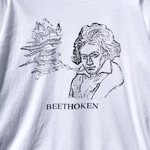 The Beethoven print with a unique touch of thin lines and the monotone color scheme give an artistic impression.