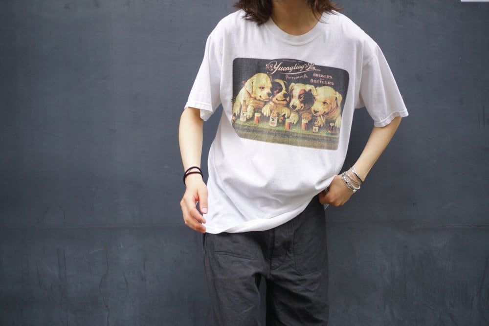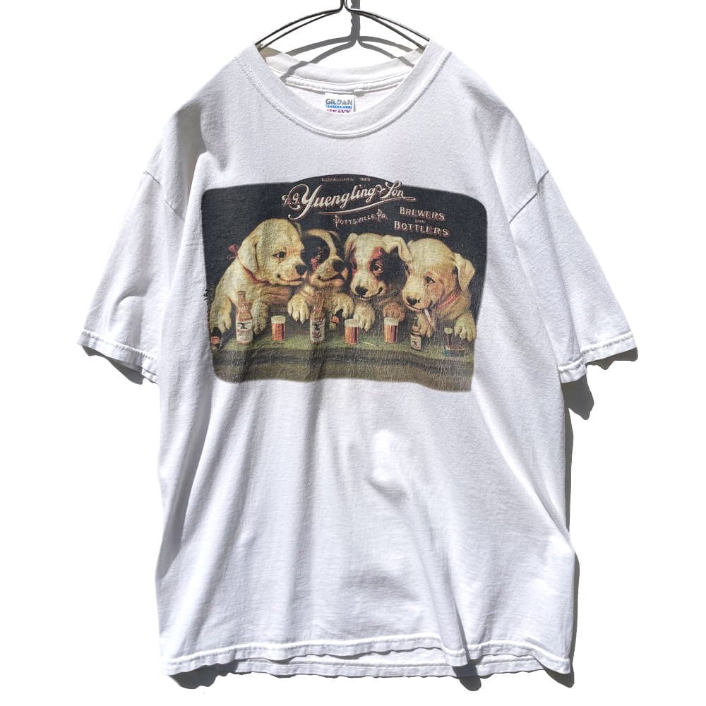 Around 1990, Americas oldest brewery DG Yuengling promotional print T-shirt.<BR> A pop design with dogs drinking beer side by side at the counter.