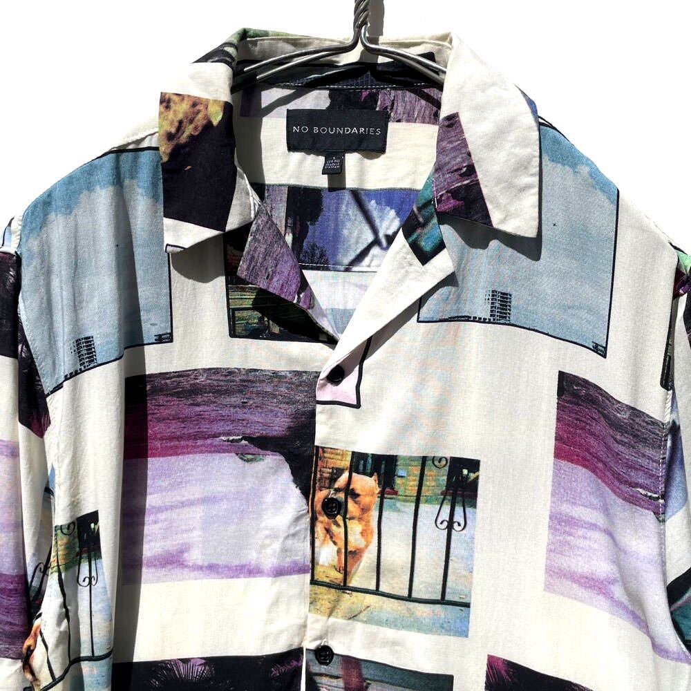 Around the 1990s, this is a photo print rayon shirt with a moist and soft texture.