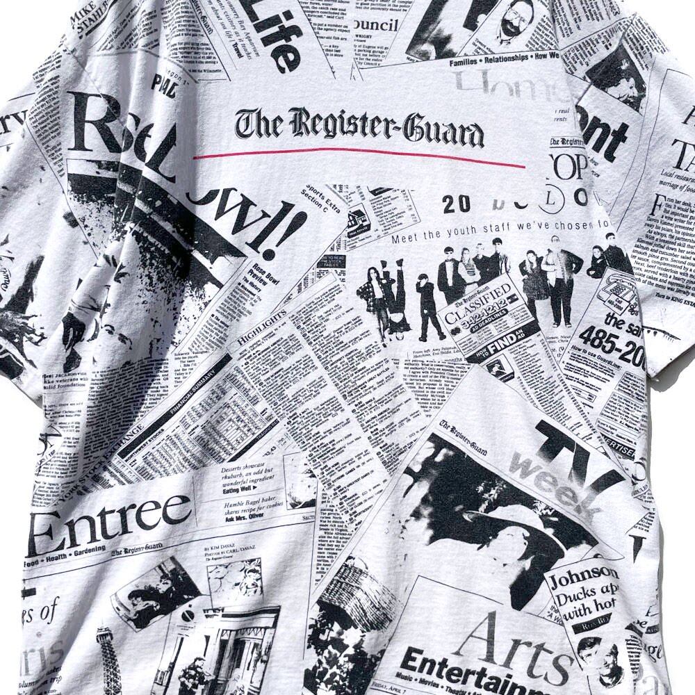 Around the 1990s, it is an all-over news paper print T-shirt.