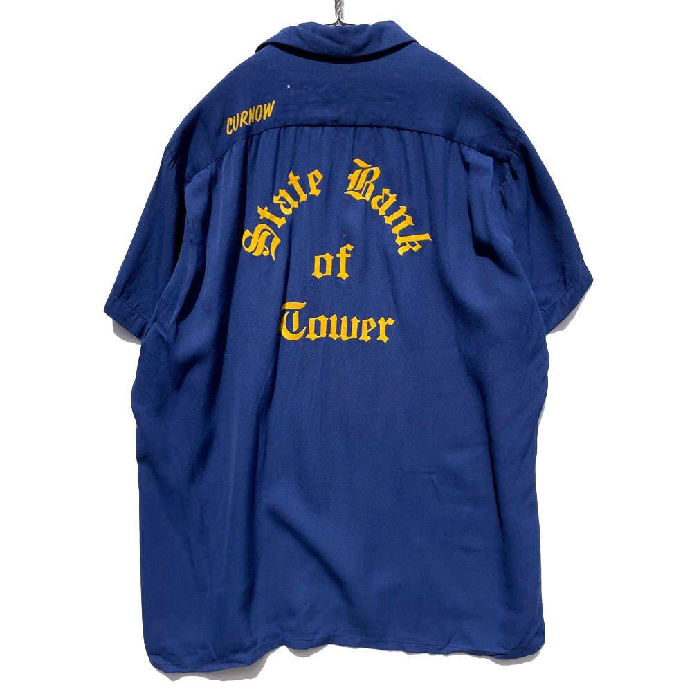 The soft rayon fabric has a smooth texture, the bowling pin buttons have a luxurious feel, and the retro flocky print on the back enhances the vintage atmosphere.