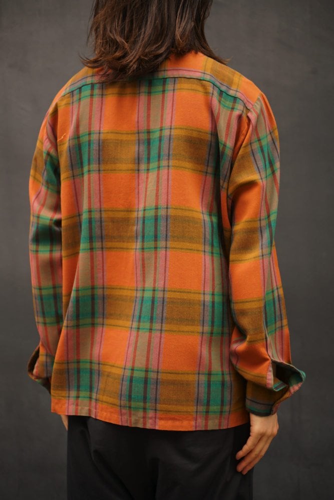This is an impressive shadow plaid check in dark tones such as orange, green, and pink, a very rare pattern in recent years.