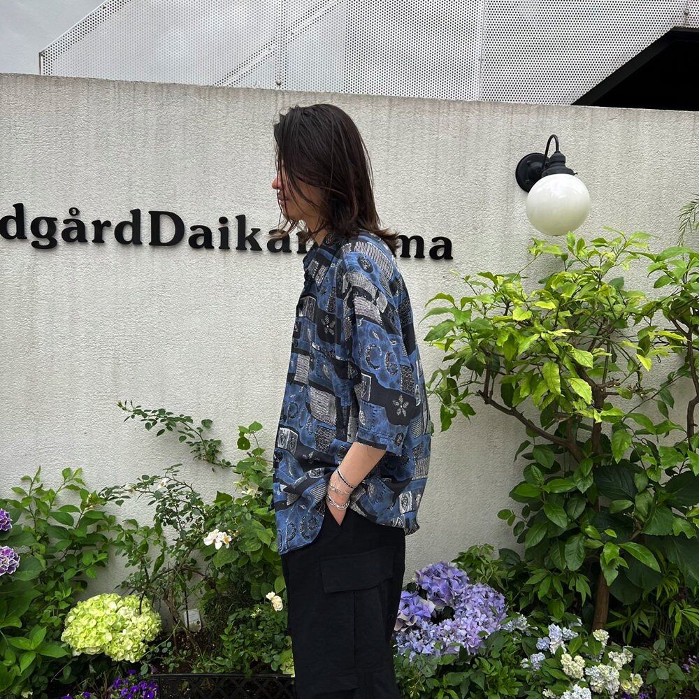 100% silk fabric that falls lightly and smoothly One piece with a cool impression of blue, black, and white art patterns A loose and loose oversilhouette shirt that stands out with the soft and beautiful drape of silk