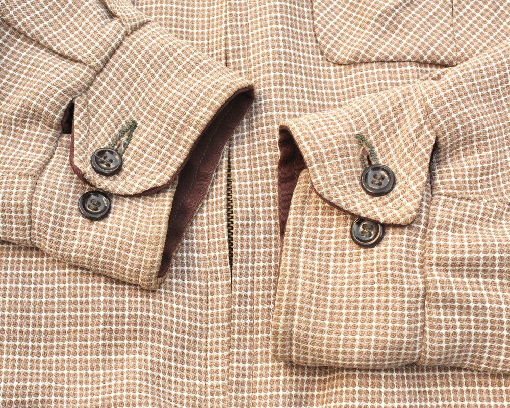 Gabardine jacket from the 1950s. It is an item seen from the 1940s to the 1960s that used rayon gabardine fabric, and is also called the Ricky jacket because it was worn by the character Ricky Ricardo in the drama I Love Lucy that was aired in the United States in the 1950s. This is a valuable reversible type, and of course the brown side, as well as the rare patterned side - bright brown x ivory-like woven pattern side, both are specifications that are typical of this era. It is a rare individual that can be worn in a well-balanced manner with a large size and a beautiful silhouette. Considering the age, it is in a beautiful state. Since it is an old item, it rarely deteriorates over time. Please check the photos and understand the vintage characteristics before purchasing.