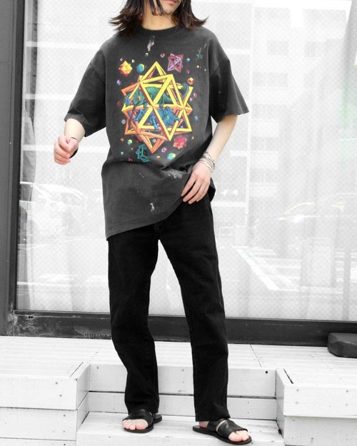 Mauritius Cornelis Escher is a Dutch printmaker who is world-famous for his trompe-loeil (trompe loeil) technique, but his technique is also highly regarded for his deep mathematical knowledge. This item was probably sold as a souvenir at the museum, especially the items from the 1990s, which have not been on the market in recent years, so the price has skyrocketed, and the popularity is skyrocketing. The print is a woodblock print STARS released in 1948, a rare colorful design with a more impactful look. The overall realistic aging condition is an individual with a vintage atmosphere. ANDAZIA body, precious XL size and relaxed silhouette. Since it is an old item, it rarely deteriorates over time. Please check the photos and understand the vintage characteristics before purchasing.
