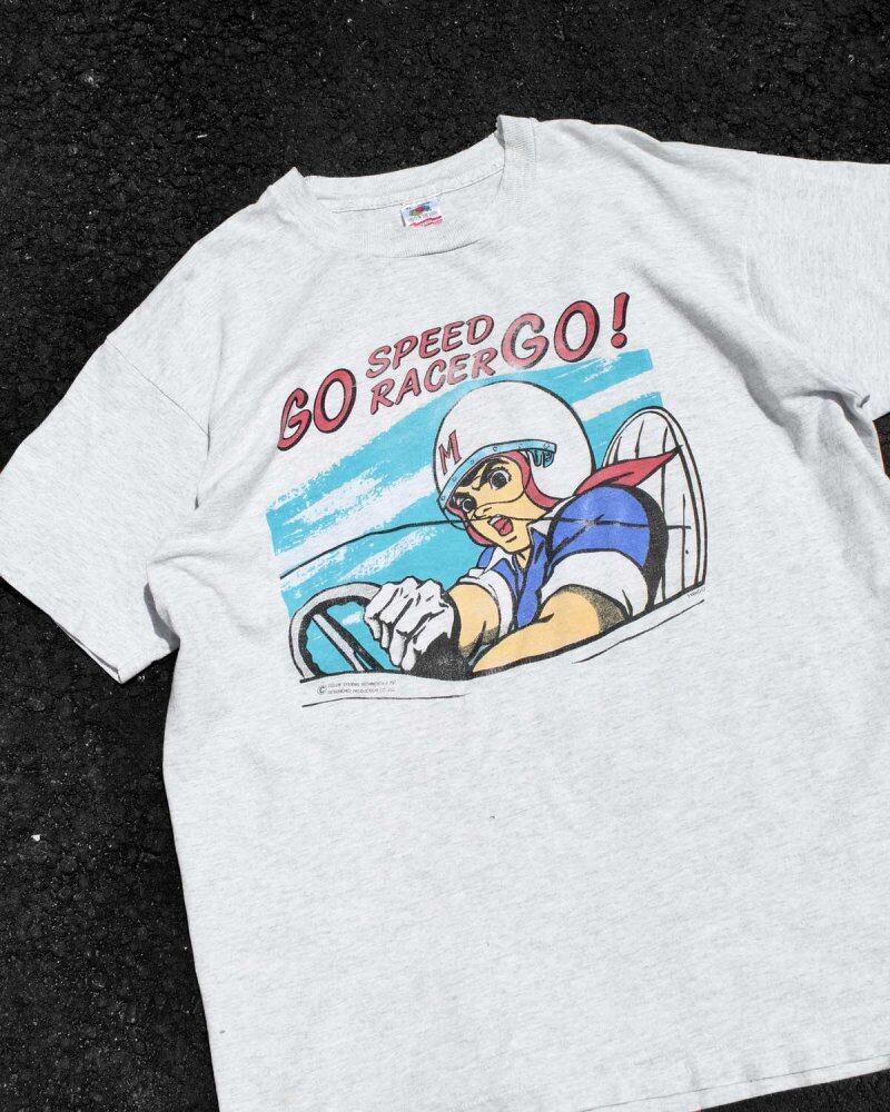 A popular 1960s TV anime Mach gogogo printed T-shirt. This is probably a promotional item from the 1990s when it was aired in the United States, and the classic comic print design has an impact. It is a very rare piece with a rare heather gray body and a back print. XL size and relaxed silhouette. When exposed to strong light, there are stains on the whole, but it is in good condition as used clothing. Since it is an old item, it rarely deteriorates over time. Please check the photos and understand the vintage characteristics before purchasing.