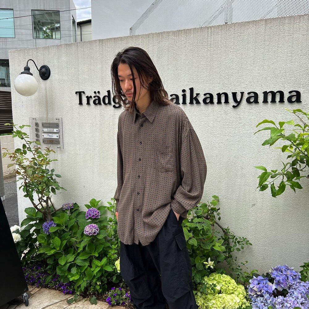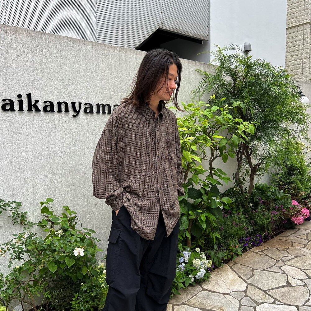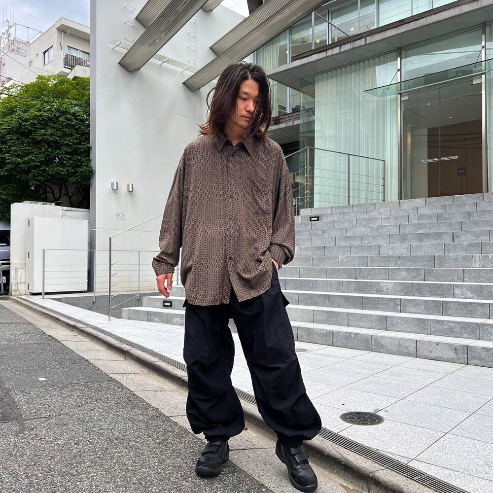 90s long-sleeve shirt Brown x black small pattern for a calm atmosphere Polyester blended rayon fabric feels soft and gentle to the touch.