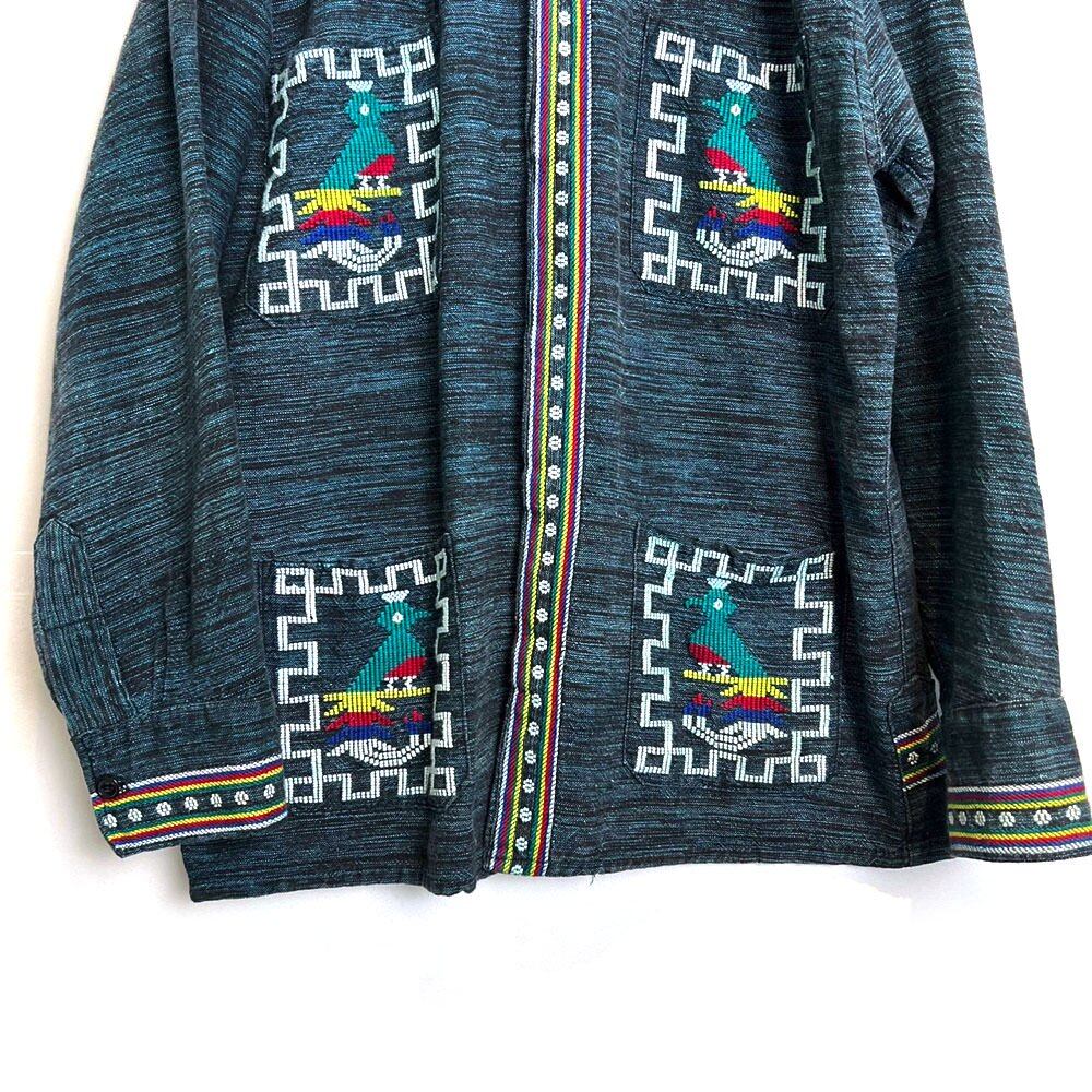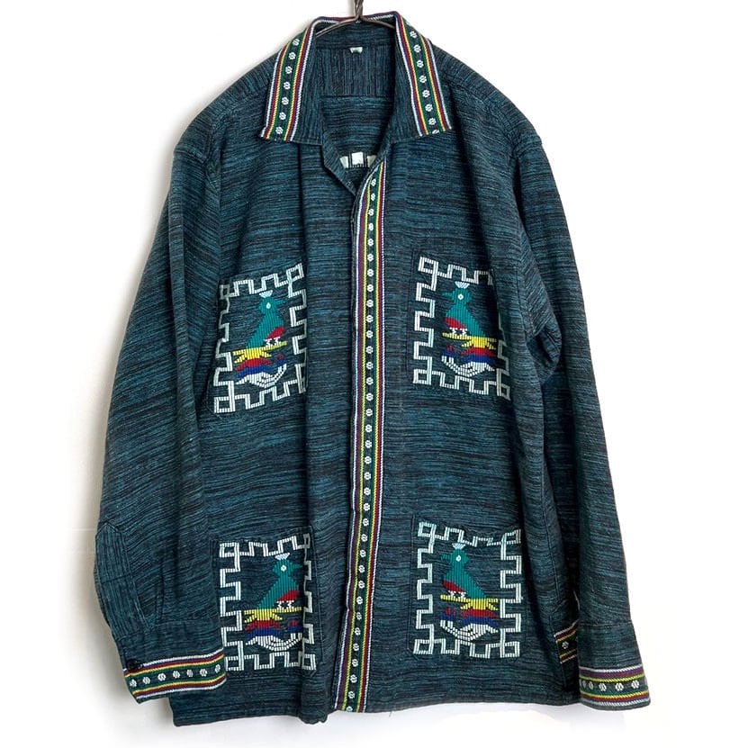 Guatemala shirt from the 70s Cool shades of blue green and black with colorful bird embroidery gives it a nice atmosphere. Vintage Guatemala shirts are often small in size, but this one has a moderately roomy size. 100% cotton fabric that is crisp and soft