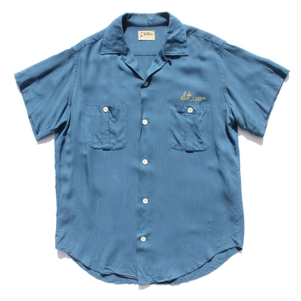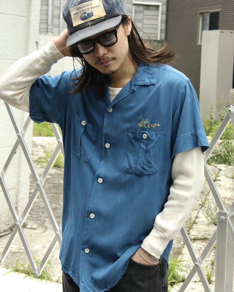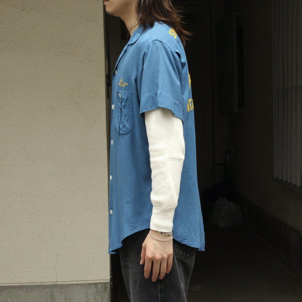 Until the 1960s, bowling shirts were made of rayon fabric, which has a smooth yet comfortable texture. A deep blue like Eurowork has a beautiful and aged astringent look. It is a stylish coloring that can be guessed from the French embroidery on the back. The M size has a moderately roomy yet clean silhouette. Since it is an old item, it rarely deteriorates over time. Please check the photos and understand the characteristics of vintage before purchasing.