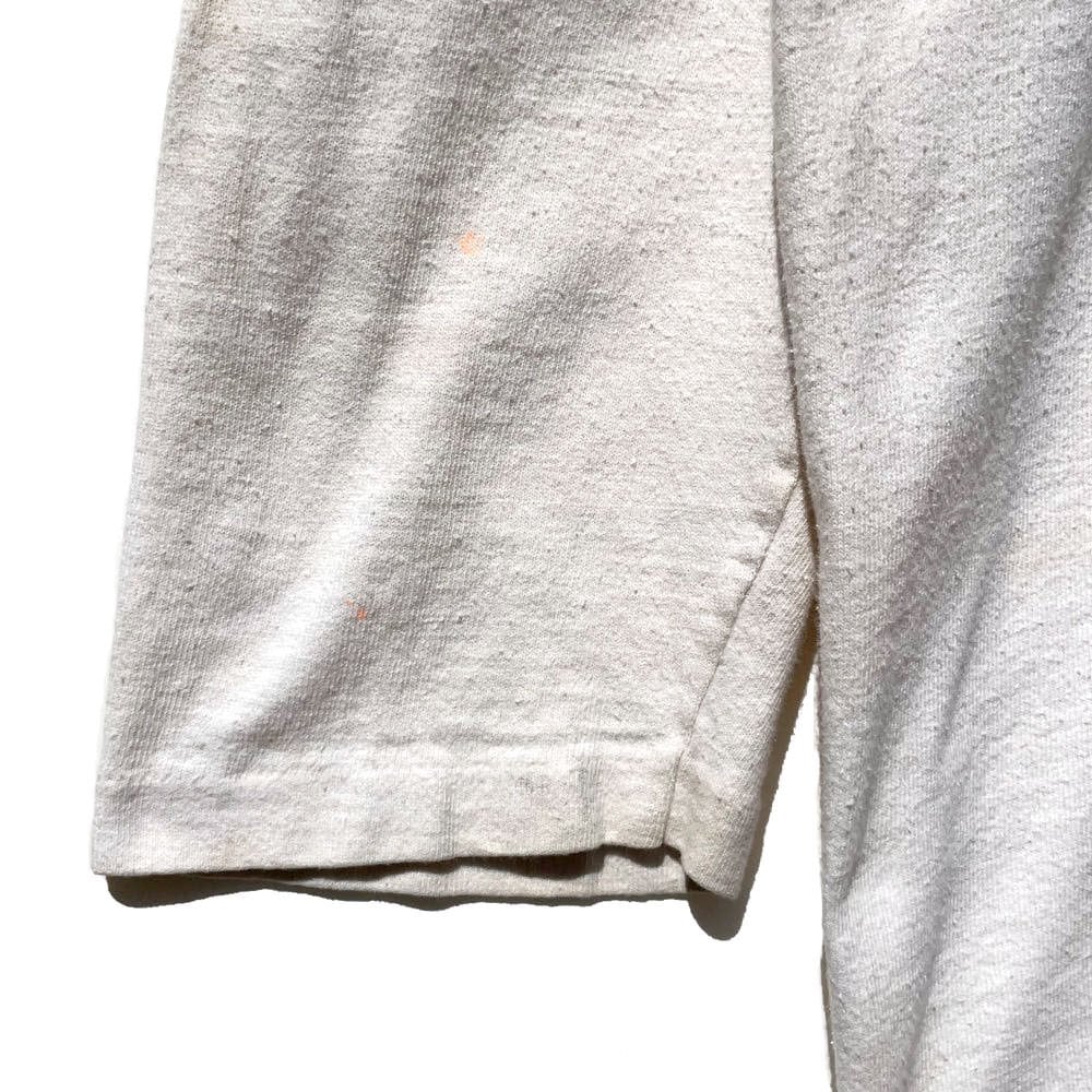 The natural texture of the thick cotton base is comfortable, and the powerful numbering on the off-white body is impressive.
