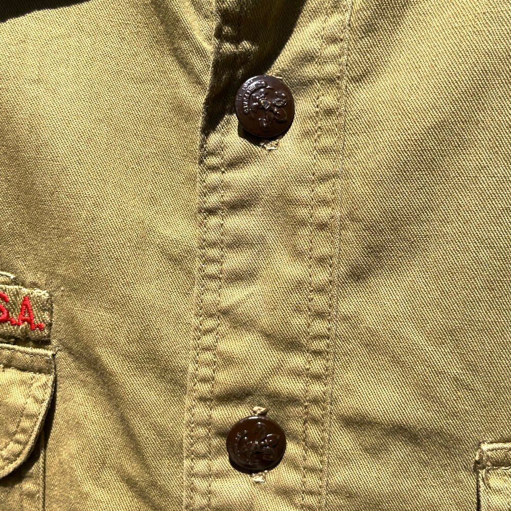 The front top and the bottom two are sewn on, and all of them are changeable buttons, and the shape of the collar and gusset are rare items from the earliest days.