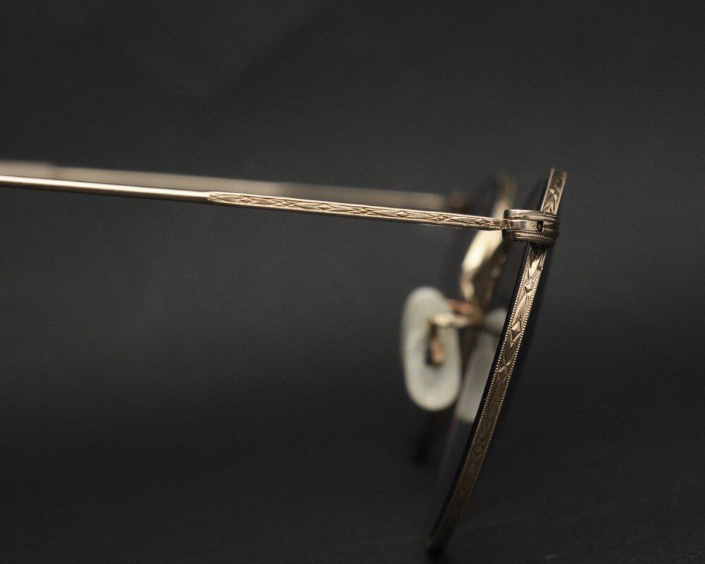 Vintage [ART CRAFT] glasses from the 1940s. Art Craft is a long-established manufacturer that started in New York in 1918, and has developed into a major company that handles everything from fashion frames to military use. A full-view type Boston round frame with temples on the top that was developed in the car society. The heavy body and metal engraving are typical of this era, giving it an elegant appearance. We have newly added ultra-thin light purple UV lenses. It has been appraised and maintained by an optician, and the size of the temple (or rope) can be adjusted. (At a nearby eyeglass shop) Although the condition has been carefully examined, there are scratches and scuffs as this is a vintage product. Please purchase after understanding the characteristics of vintage and antique. All of our eyeglasses are maintained and lens exchanged at g room, an eyewear store in Ebisu, Tokyo.
