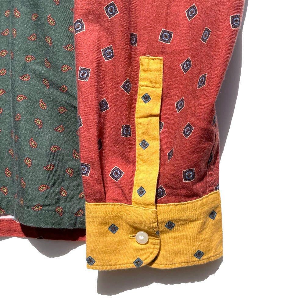 This is an eye-catching design that looks like this era with small patterns, paisleys, and dot patterns randomly arranged in panels.