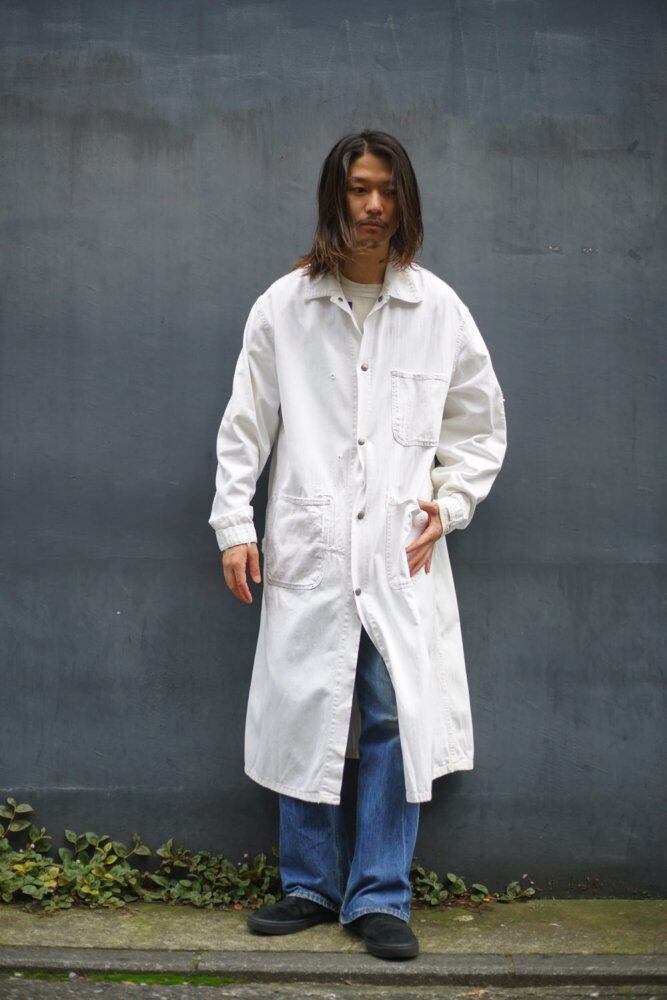 Around the 1960s, it is a shop coat made by UNIVERSAL OVERALL.