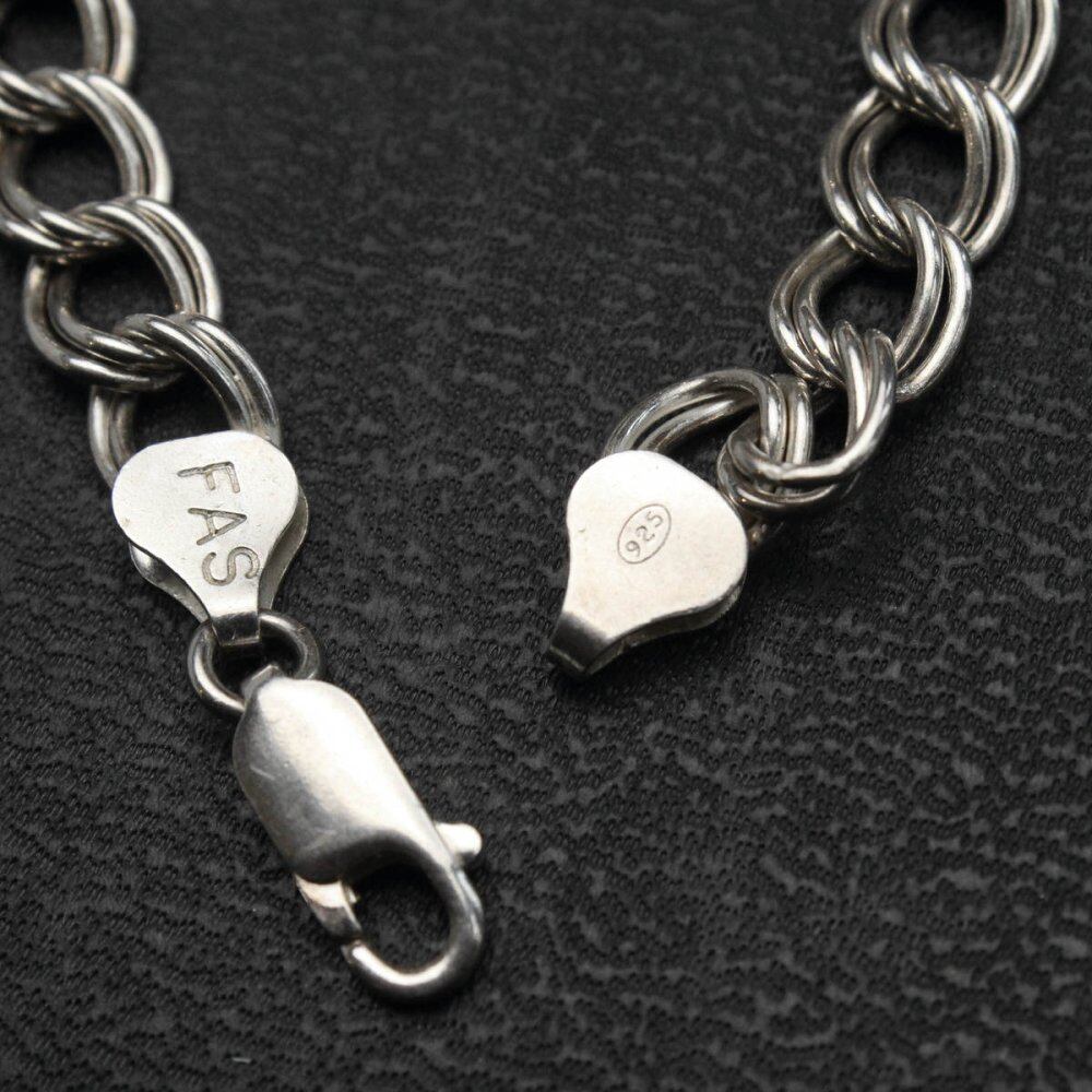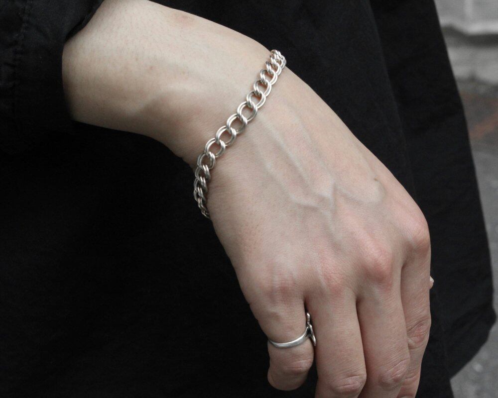 A chain bracelet made in Italy with craftsmen who specialize in delicate construction. An individual that gives a minimal and delicate impression with a chain with a design in which two hooks are linked side by side. It has a moderately thick silhouette and has a casual and elegant appearance. Made in Italy 925 stamped. Since it is an old item, there are scratches, etc. Please check the photos and understand the characteristics of vintage before purchasing.