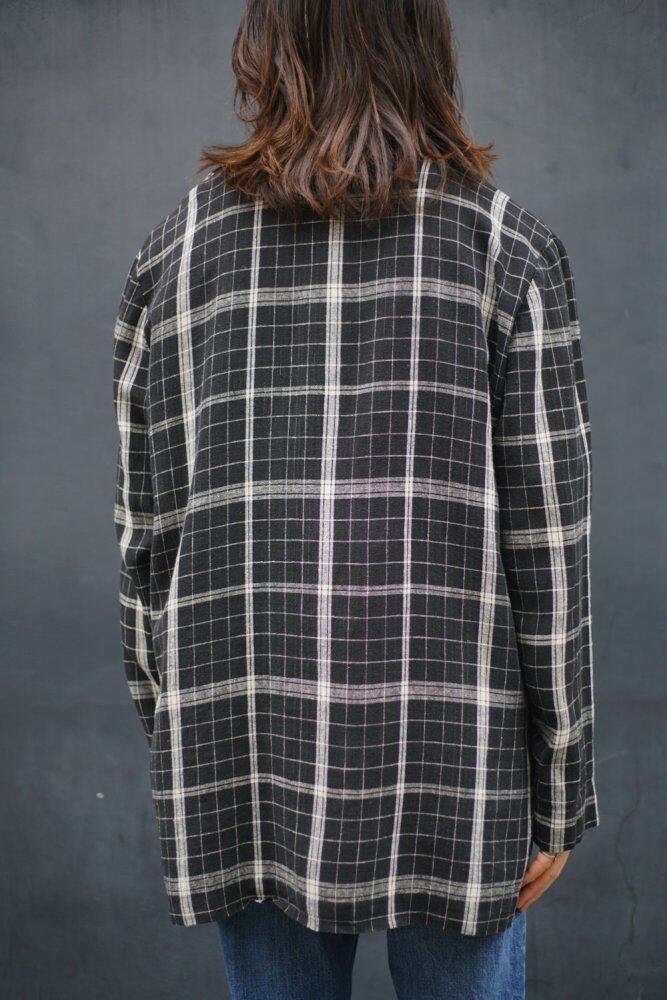 It has a moderately roomy size, a soft line that follows the body while retaining the mannishness of the box silhouette of the time, and a relaxed silhouette without shoulder pads.