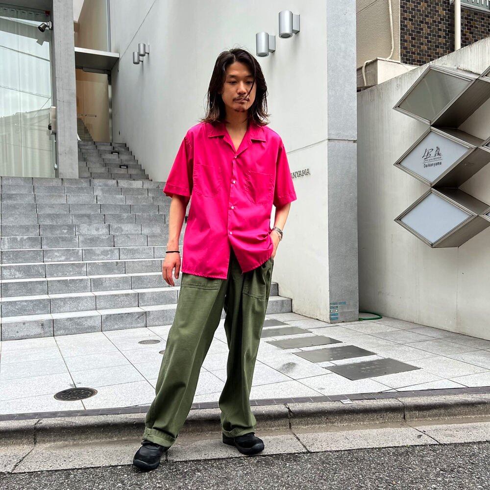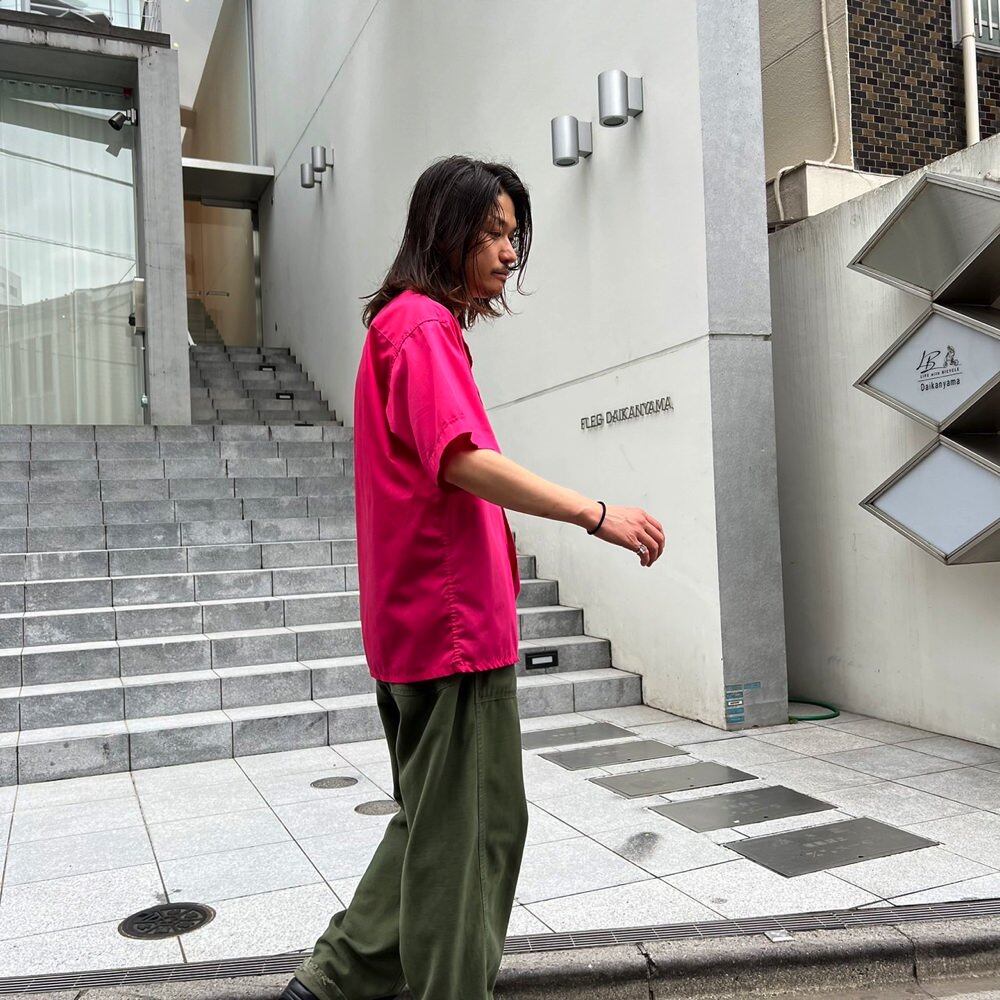 Vivid pink color, which is rare for 60s shirts, is a summer-like shade. Thin and light cotton x polyester fabric with a smooth texture.