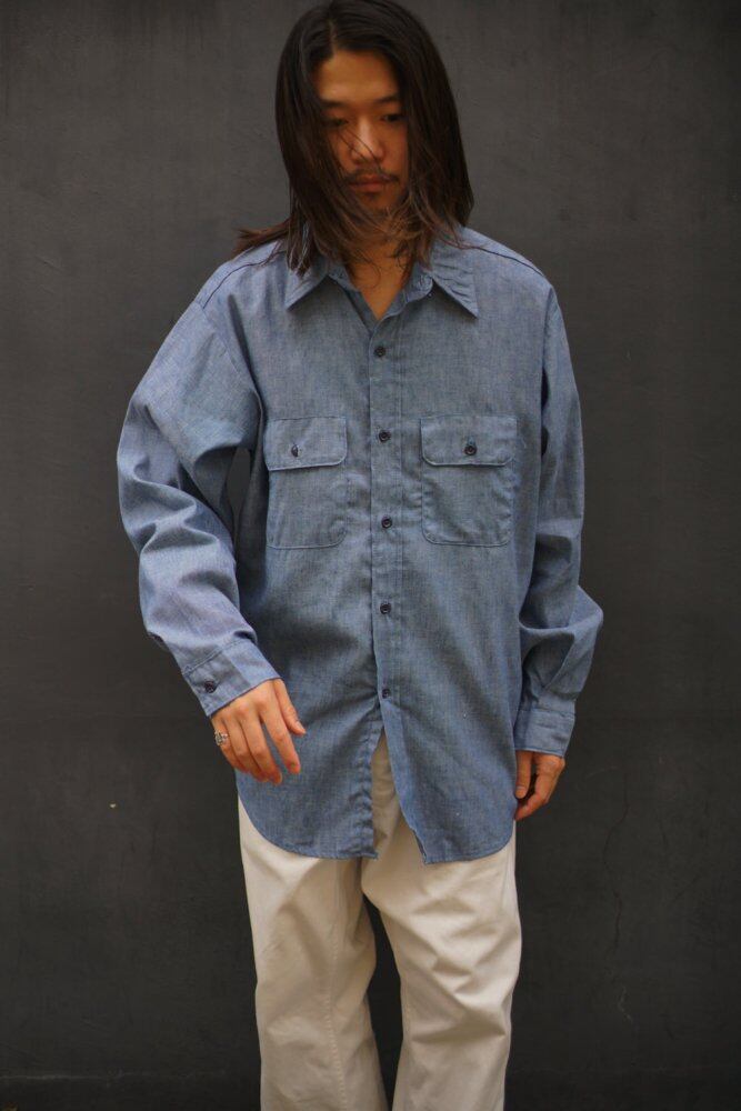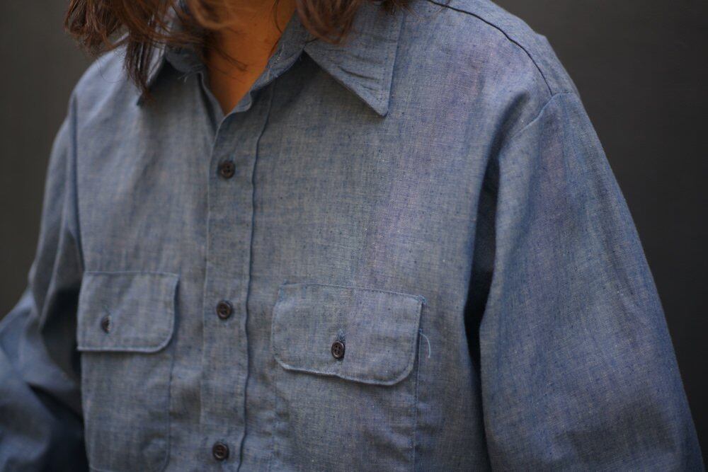 It is a dead stock chambray shirt made by FIVEBROTHER in the 1980s.