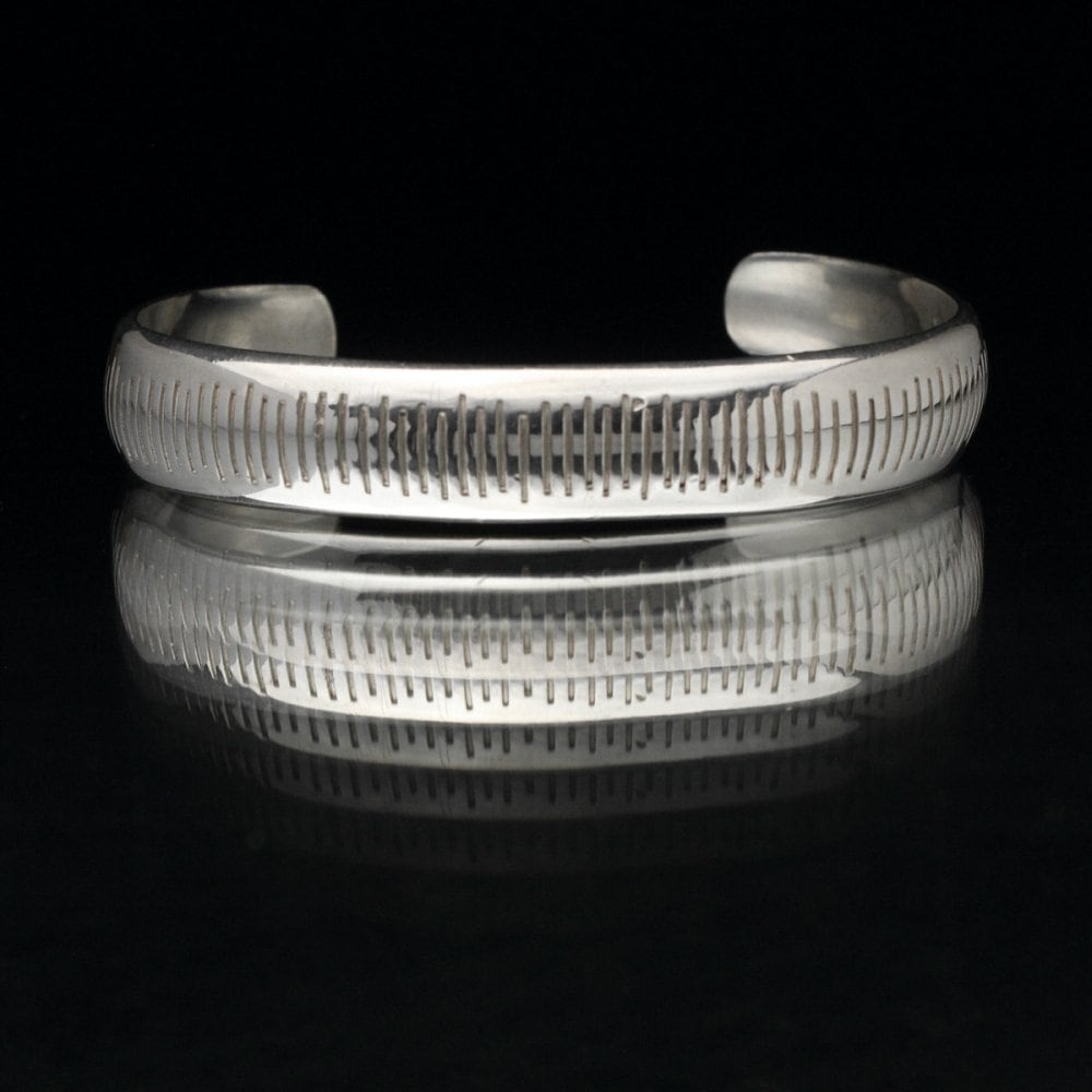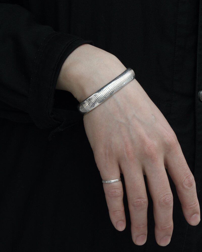A silver bangle by Desak Nyoman Suarti, an artist from Bali who was active in New York from around the 1980s until 2000. Currently based in Bali, but this is probably from the 1990s. It is an individual with a minimalist silhouette with a slight Navajo feel, a weighty body, and an elegant design that does not make you feel Balinese ethnicity in a good way. BA925 stamp. There is hardness, but some adjustment is possible, too. Please check the condition in the photo and understand the characteristics of vintage before purchasing.