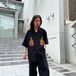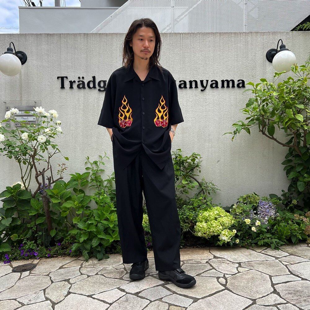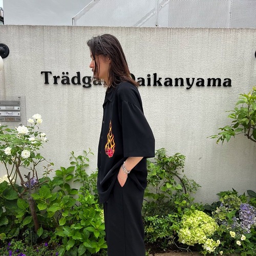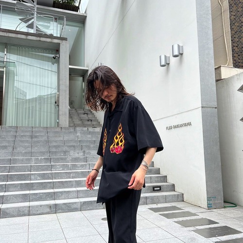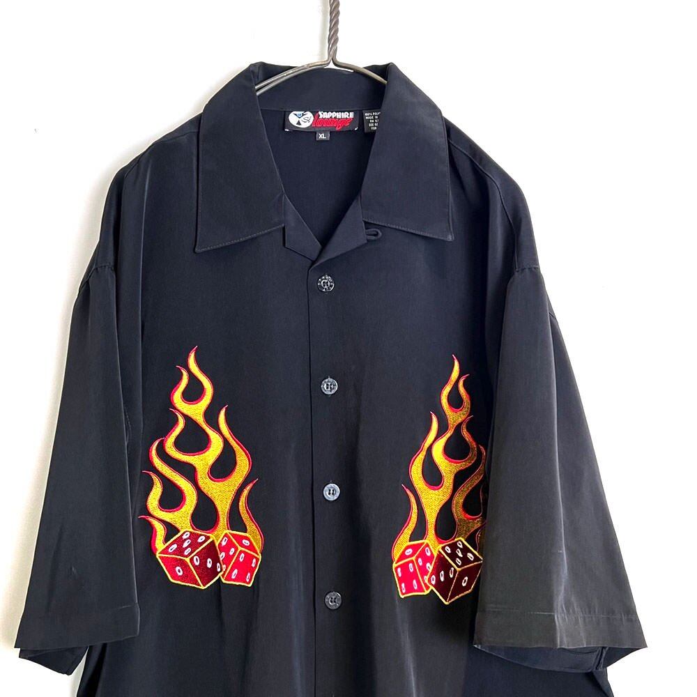 Short-sleeve shirt from the 90s Loose XL size over-silhouette shirt The fire and die embroidery on the black body gives it a bad feel.