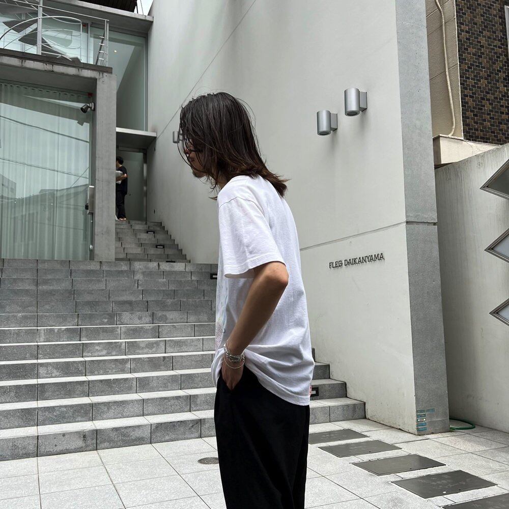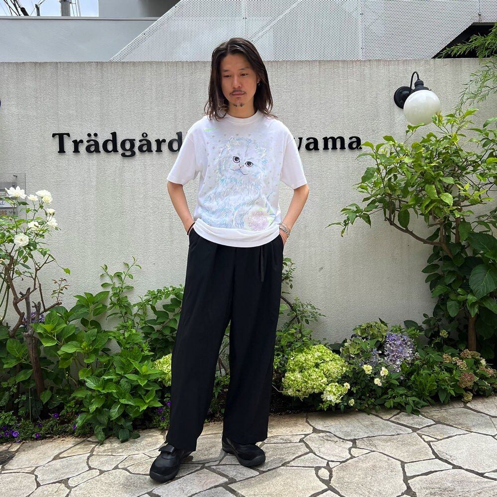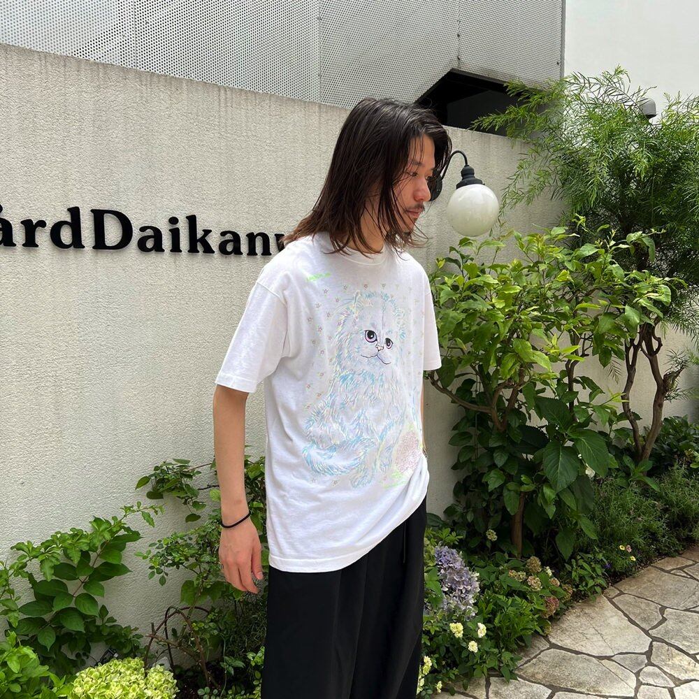 Vintage T-shirt made in 1989. The cat and hydrangea printed in pale colors on the white body give it a kitsch cuteness. is L size
