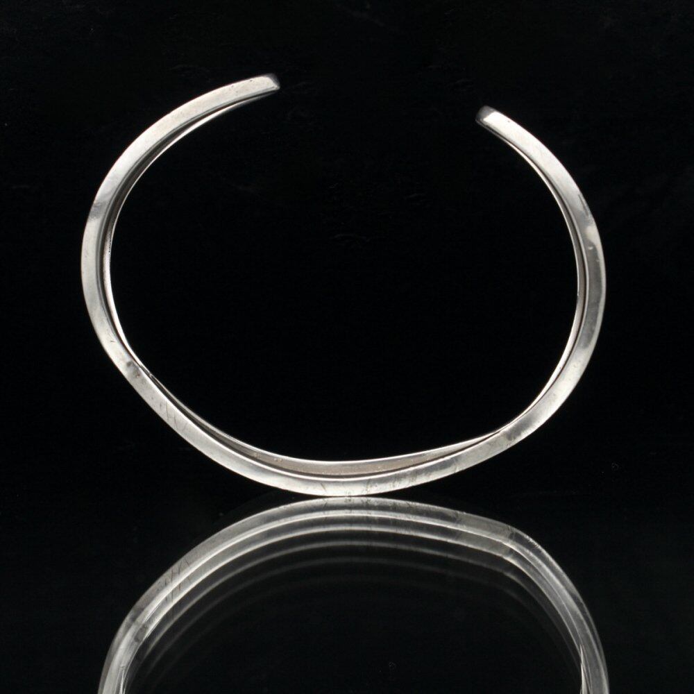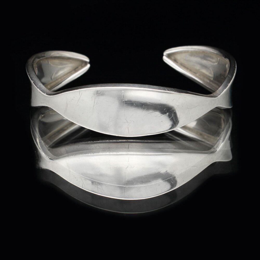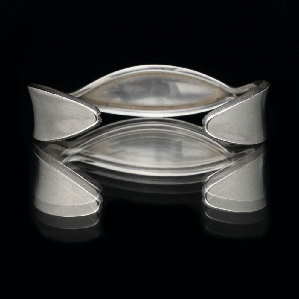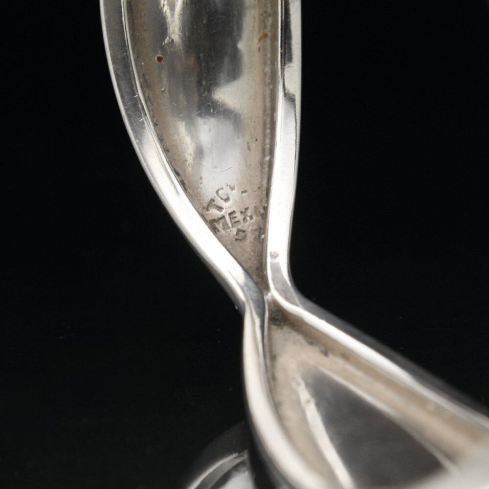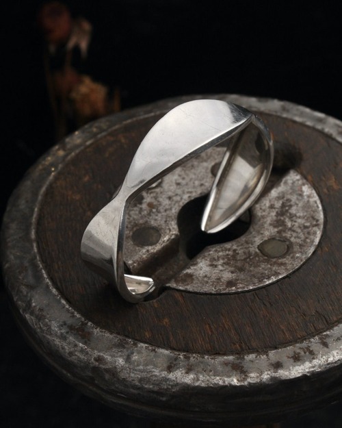 Made in Taxco, Mexico, one of the worlds leading silver mining areas, where many silver artists and craftsmen have gathered since ancient times. It is a vintage that has been attracting attention in recent years with its own evolution with a design like Native American jewelry that shows the influence of Southwestern America from the native Aztecs, and the sophisticated minimal design of Scandinavia. This is a very minimalist design with a solid body with a shape that has a strong presence. The plate part is also made with an R toward the center, showing a three-dimensional and elegant shine. The chromed dull silver gives it a vintage look. Mexico - Taxco imprint. Its sterling silver. Since it is an old item, there are scratches, etc. Please check the photos and understand the characteristics of vintage before purchasing.