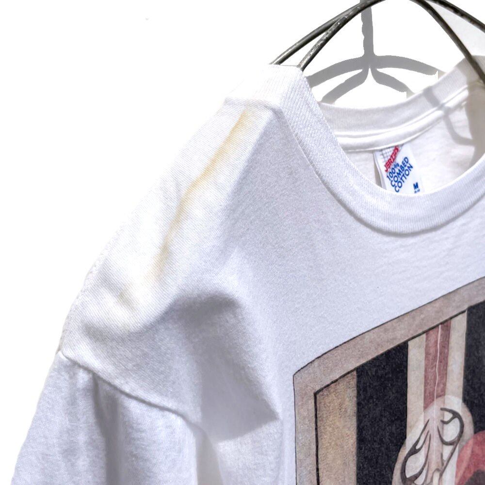 1990 Joe Gashick copyrighted, USA-made jerzees body, double-stitched sleeves and hem, tanned shoulders.