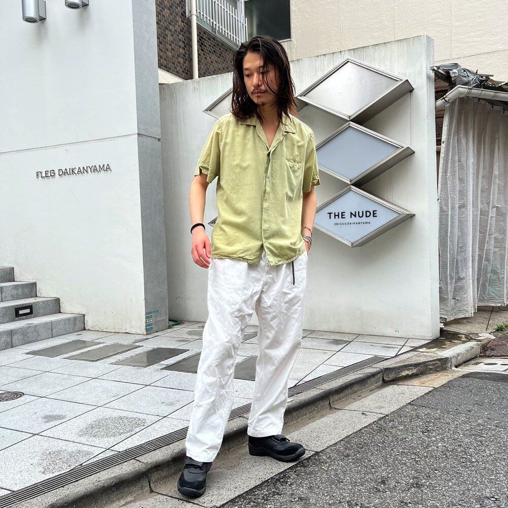 Short-sleeved shirt from the 60s Pale green color with astringent kasuri texture gives it a grown-up feel. 100% cotton fabric with a smooth texture. One piece of just eye silhouette