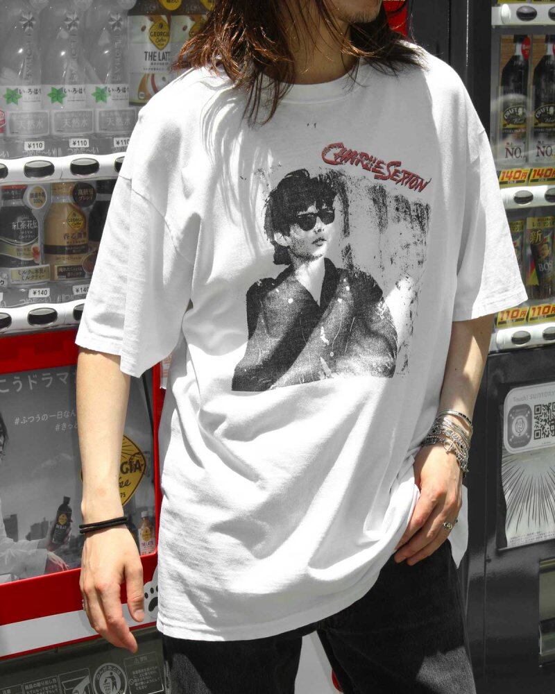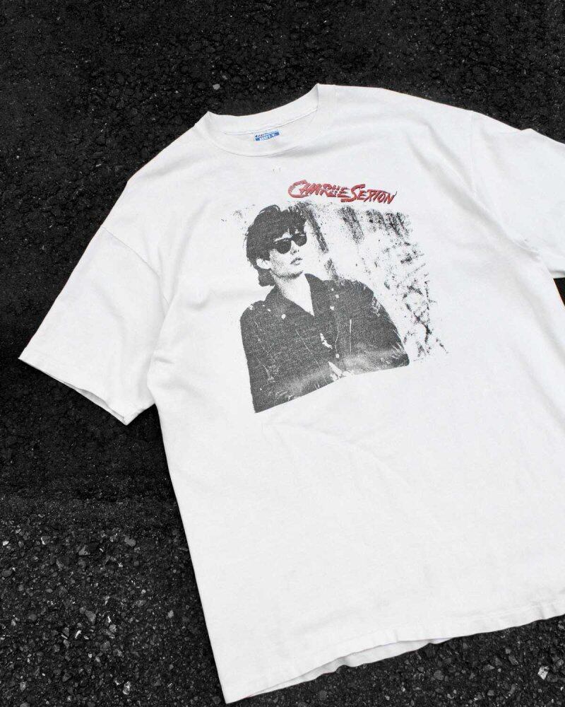 American rock musician Charlie Sextons 1985 debut album tour t-shirt. It is a very rare piece, and the charismatic print that was popular at the time and the lettering that is typical of this era are highly designed. A loose silhouette in 2XL size, which is rare in this age. Hanes white cotton body, in good used condition. Since it is an old item, it rarely deteriorates over time. Please check the photos and understand the vintage characteristics before purchasing.