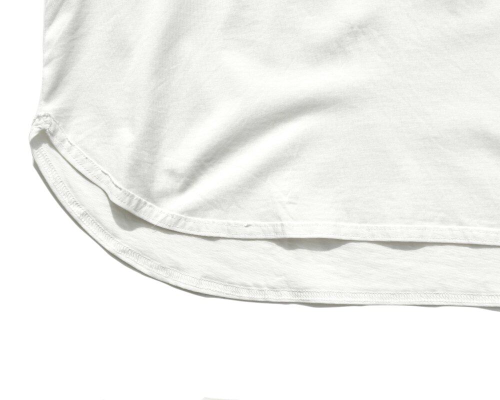 [roundabout] 2023 S/S Uses a cotton sheeting fabric that is spun using a process that is rare in modern times, using extremely valuable raw cotton grown in the snowmelt water of Californias San Hawkin Valley. The edges are cut off, folded back and stitched, making it light and comfortable to wear. The rounded hem fits around your waist as you move, making it a silhouette that is also active when layered. A tank top that shows off the elegance of the fabric.
