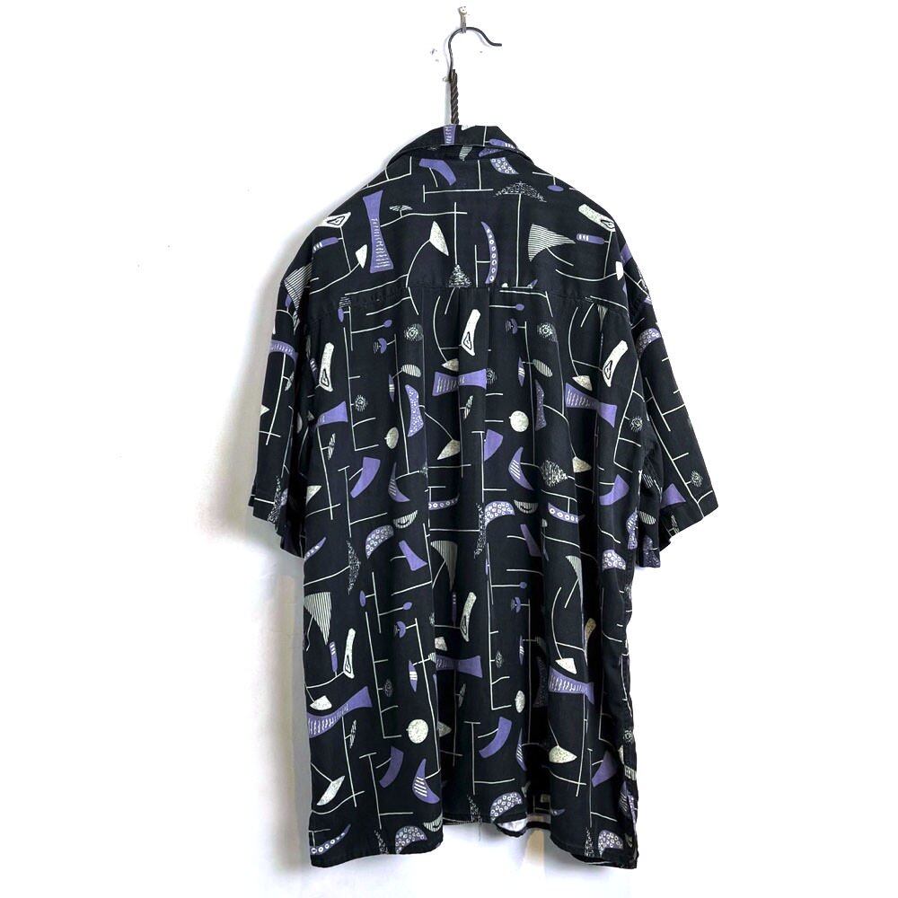 Short-sleeved shirt from the 90s Atomic pattern in black color that is easy to match A comfortable piece of clothing made of rayon and polyester with a soft and soft texture.