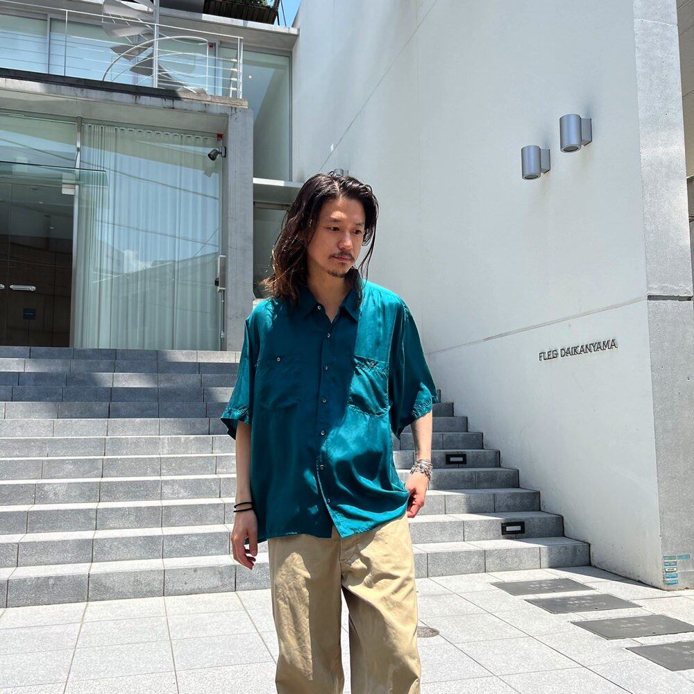 Short-sleeved silk shirt from the 90s A nice emerald green shade with a refreshing feel.