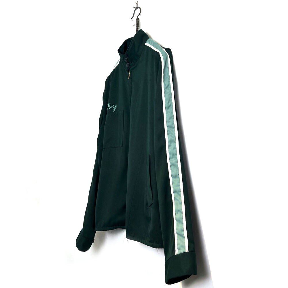 Gabardine jacket from the 70s A deep green body with refreshing mint colored side lines gives it an atmosphere like a track jacket or a racing jacket. Gabardine fabric A vintage jacket with a well-balanced length and a good silhouette.