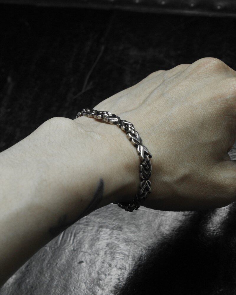 A chain bracelet made in Italy with craftsmen who specialize in delicate construction. Byzantine style flat body design chain is an individual that shows an elegant yet mannish look. A medium-sized silhouette with a casual presence. Also great for layering. Made in Italy 925 stamped. Since it is an old item, there are scratches, etc. Please check the photos and understand the characteristics of vintage before purchasing.
