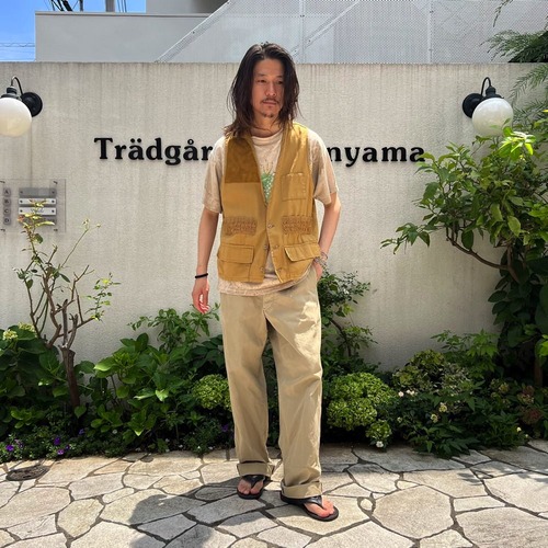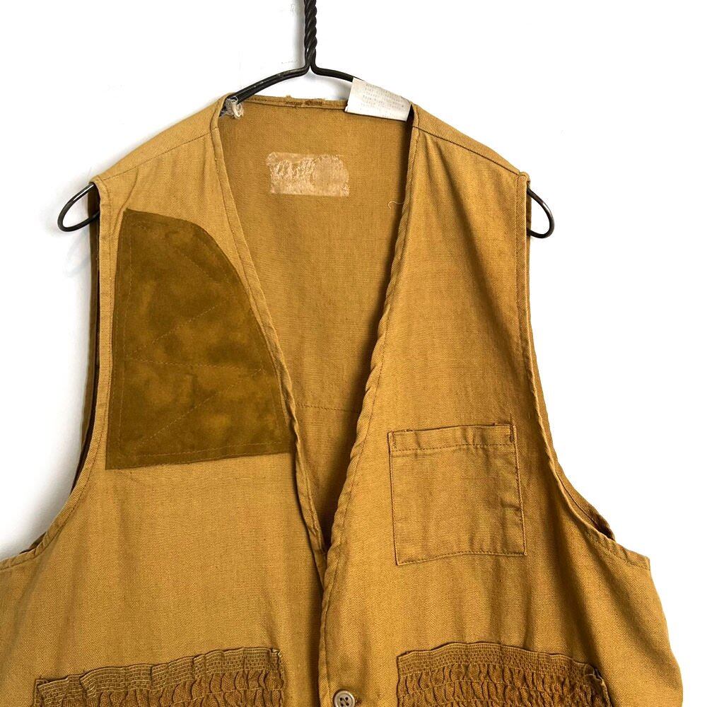 The hunting vest from the 70s is a convenient vintage item with a large storage capacity, such as the pocket on the front and the game pocket on the back. Its a perfect item for a layered style in the hot summer. Very rare in vintage hunting vests. One piece with a great silhouette. A color that is easy to match with the standard khaki color