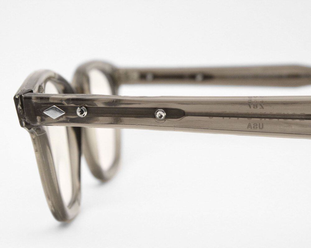 Vintage around the 1970s, safety glasses that were used in factories at the time, but it is a vintage frame that is popular in recent years because it is easy to wear with its old and fashionable Wellington type. This is an easy-to-wear Wellington silhouette that gently curves toward the hinge. The clear frame with astringency of olive brown also creates an industrial atmosphere like American safety. I have new clear UV lenses. It has been appraised and maintained by an optician, and the size of the temple (or rope) can be adjusted. (At a nearby eyeglass shop) Although the condition has been carefully examined, there are scratches and scuffs as this is a vintage product. Please purchase after understanding the characteristics of vintage and antique. All of our eyeglasses are maintained and lens exchanged at g room, an eyewear store in Ebisu, Tokyo.